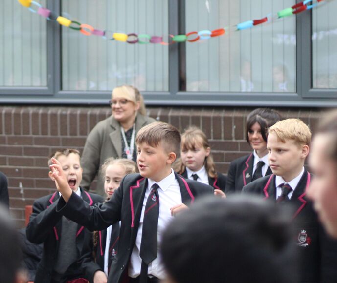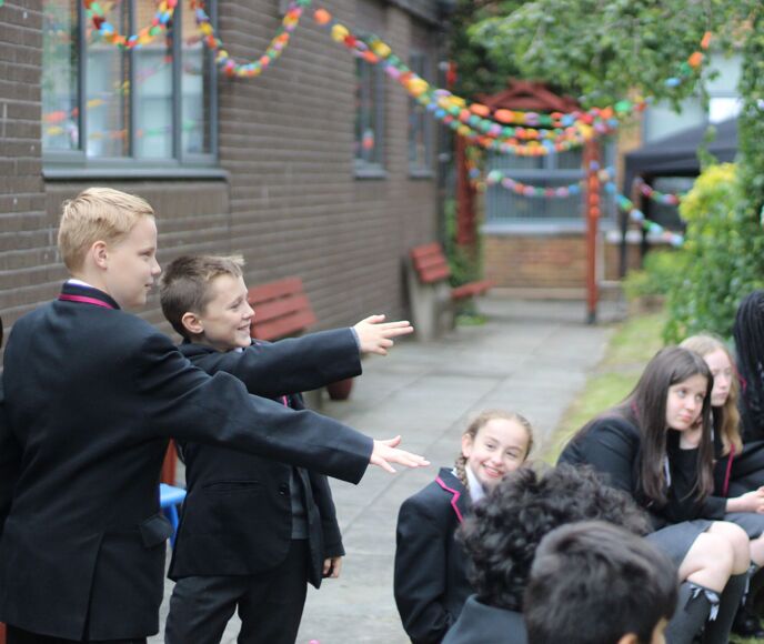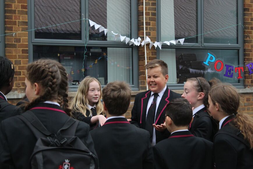 Students from our Year 7 cohort in King’s Hawthornes, Liverpool, Warrington and Bolton were not just meeting in our decorated courtyard for sandwiches and cake. They had been tasked with memorising a poem of their choice in the preceding weeks and now was their chance to perform to a full audience of their peers and a special guest judge.